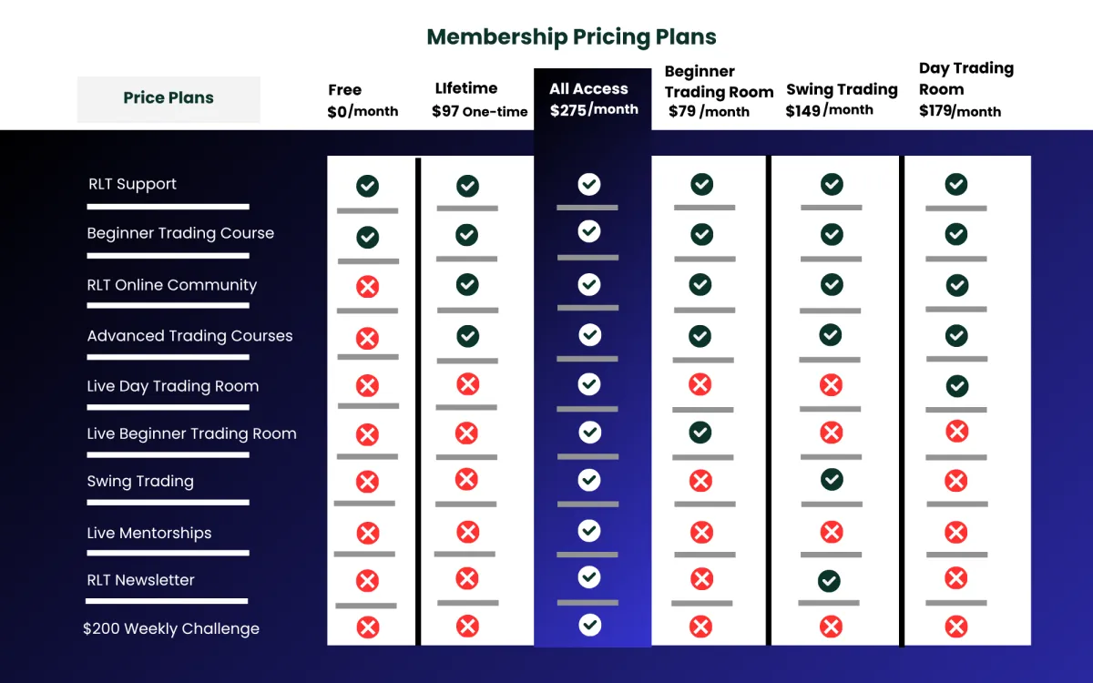 All Live Trading Rooms + Slack Channels + RLT Newsletter