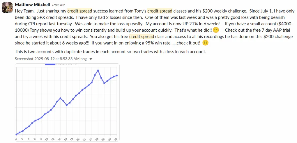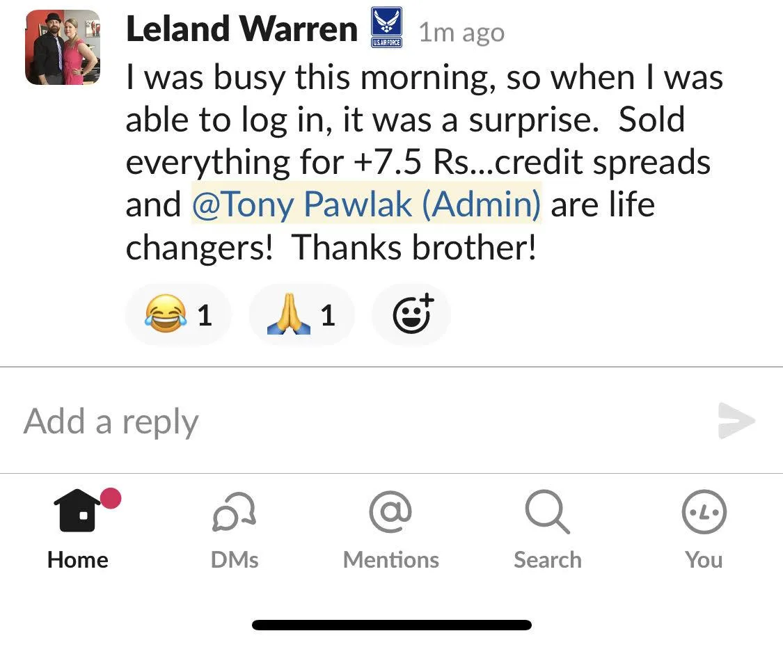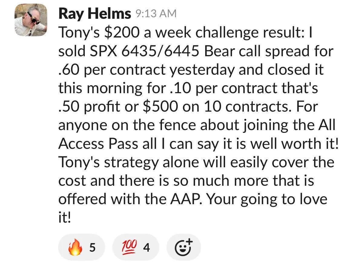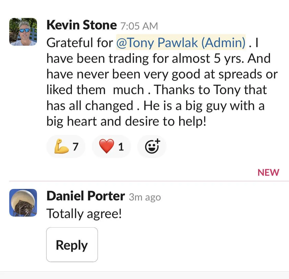 Spend 3 Hours each week with options expert Tony Pawlak, where you’ll dive deep into options trading and learn his proven Credit Spread Strategy. That Strategy has a 95% Win Rate and has helped Thousands of traders bring in consistent income each week!