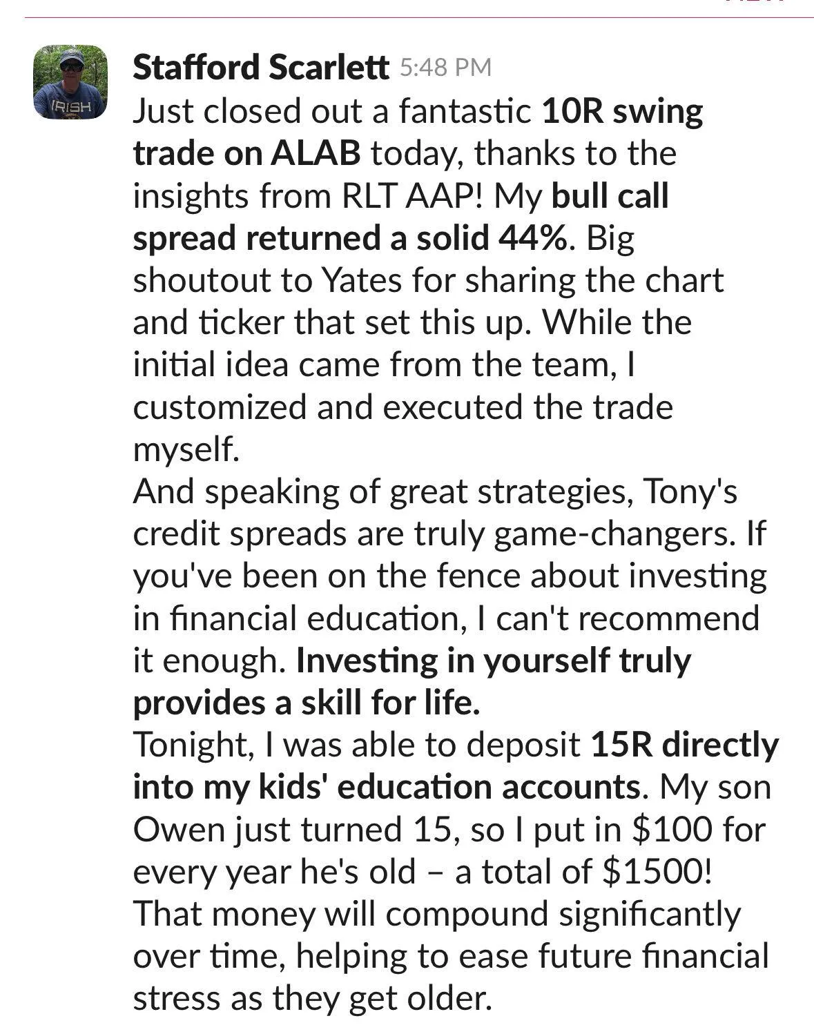 Join the private Swing Trading Slack Channel to share ideas and stay motivated with like-minded traders.